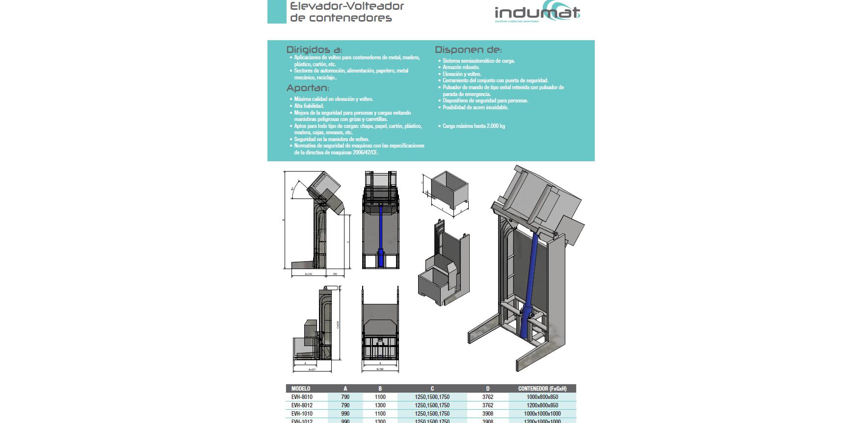 Con la fabricación de un nuevo prototipo, Indumat lanza su nueva gama de Elevadores-Volteadores.
